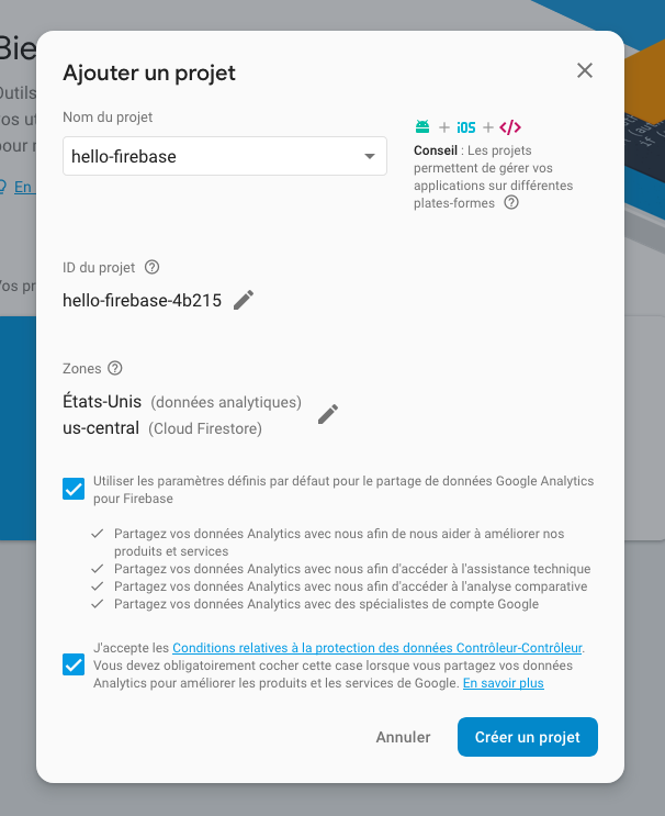 We first need to create a Firebase project, go to Firebase and follow these steps: