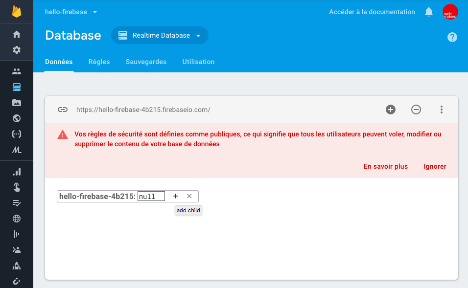 This doesn't do much for now but we have everything ready to start using our Firebase Realtime Database.
