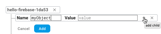 - enter a key name in the "child box" and click on the "+" (add child) in the "child box" to enter new key/value pairs